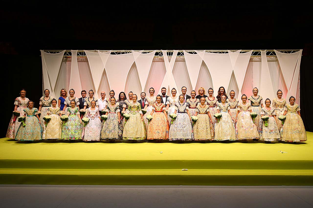 A continuació, feien la seua entrada en l’escenari els presentadors de la gala, Carme Bort i Ximo Rovira, per a anomenar a les màximes representants de les Falles 2017, els que un any després, tornen al mateix escenari per a despedir-se del món faller.