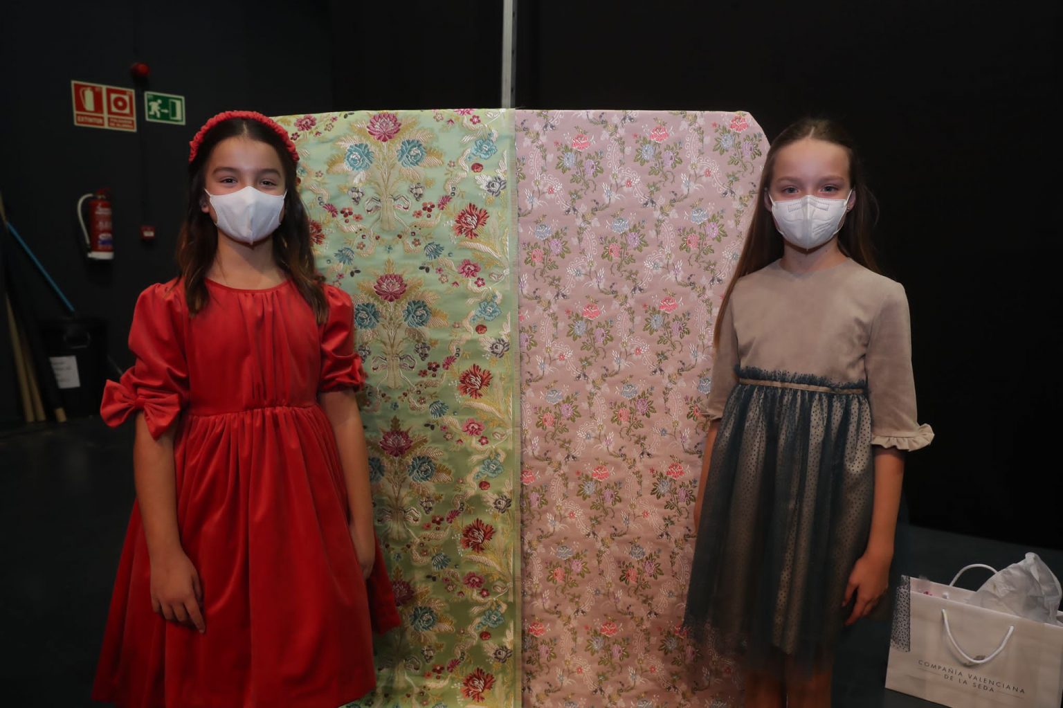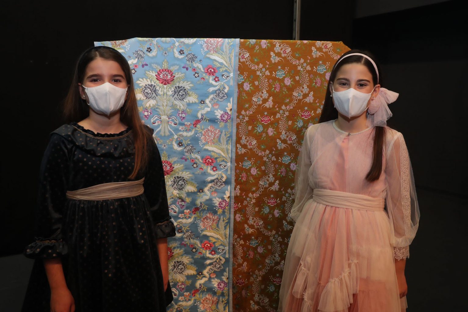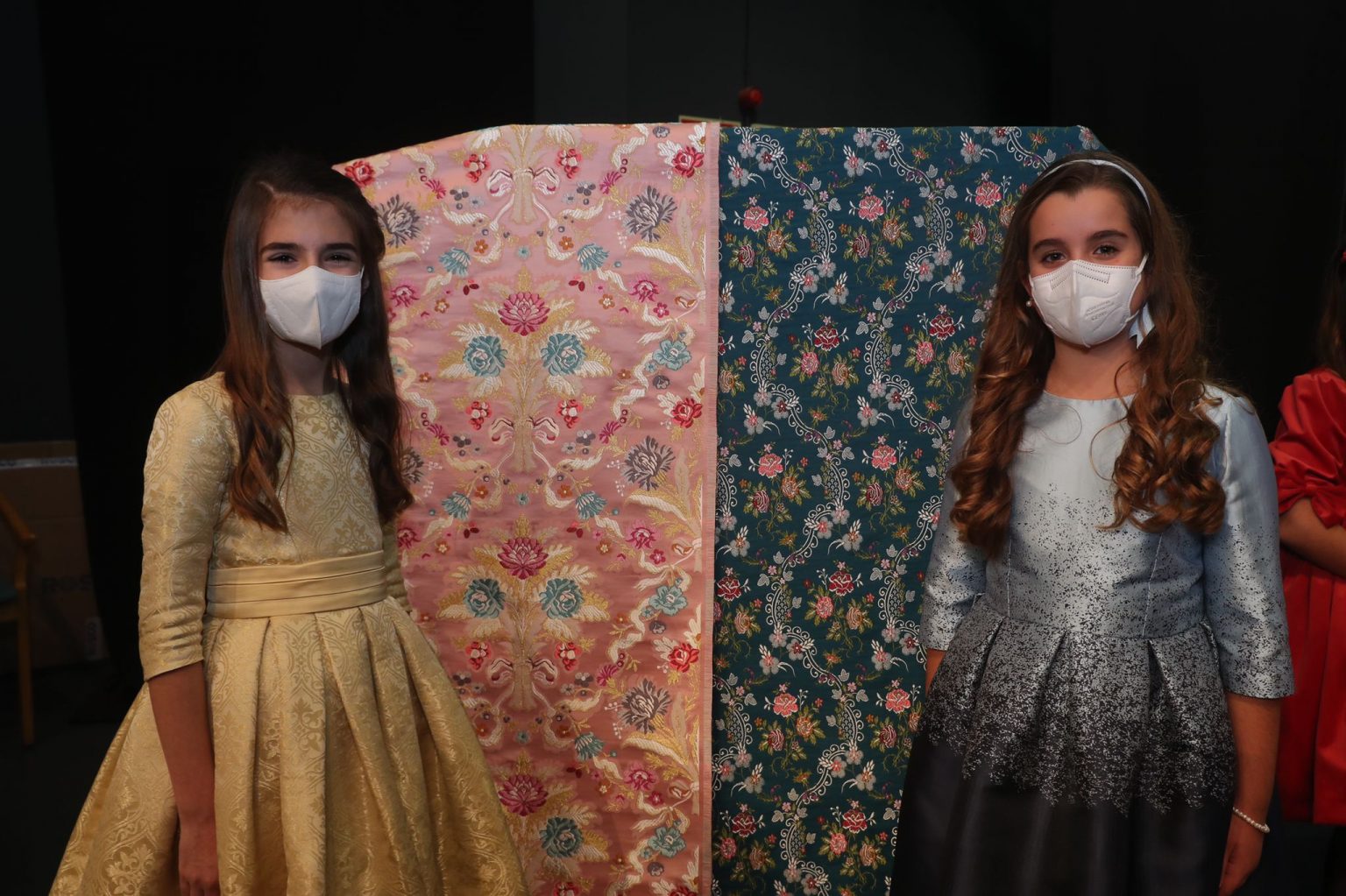Dues teles elegants i alegres per a les nenes que componen la Cort d’Honor de la Fallera Major Infantil de València.