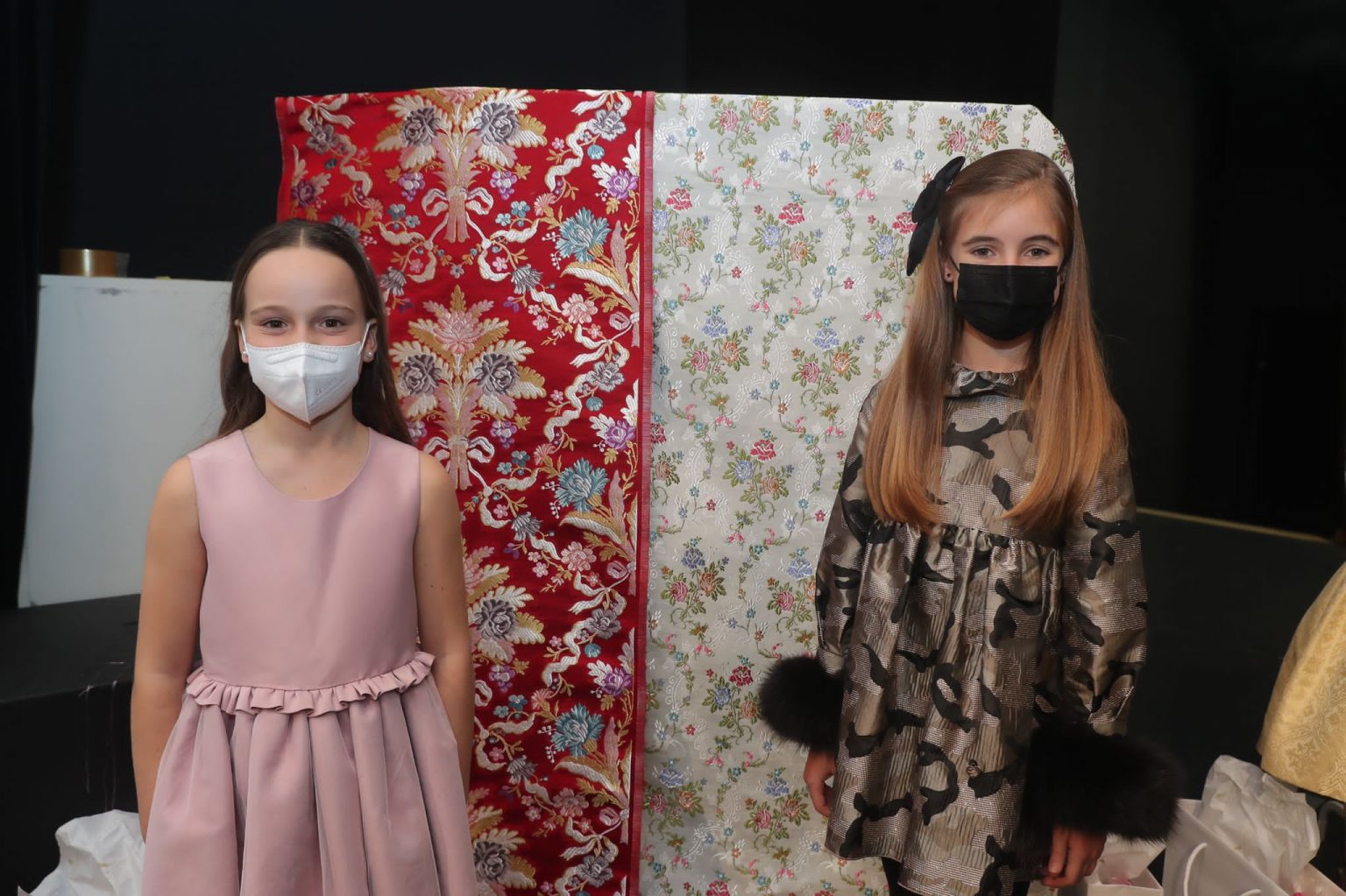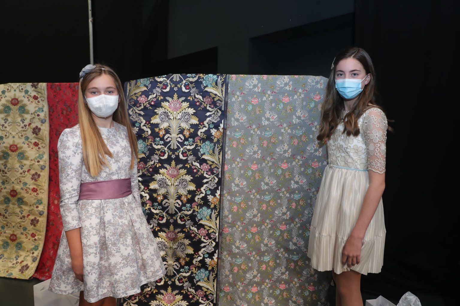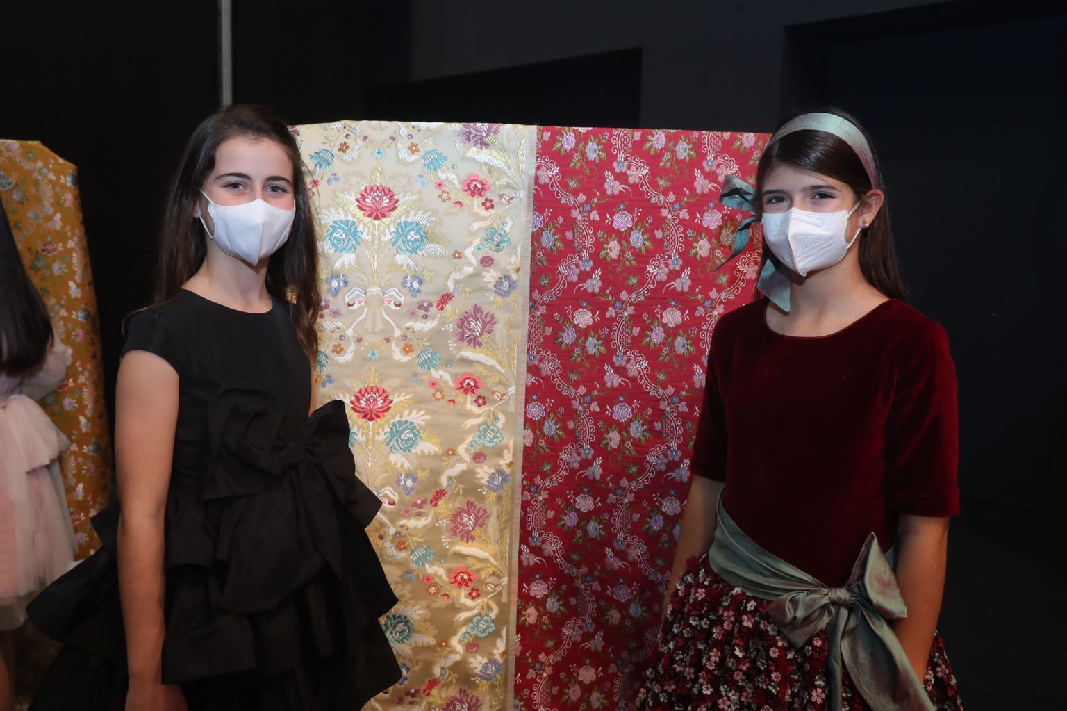 Dues teles elegants i alegres per a les nenes que componen la Cort d’Honor de la Fallera Major Infantil de València.