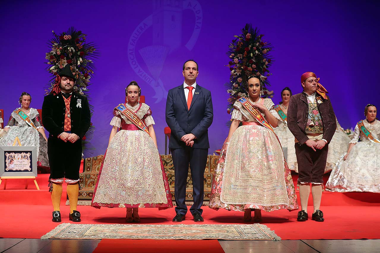 La Fallera Major de València 2020 Consuelo Llobell, no va faltar a l’acte per donar l’enhorabona en persona a Eva i Andrea, una vegada exaltades com a Falleres Majors d’Aldaia.