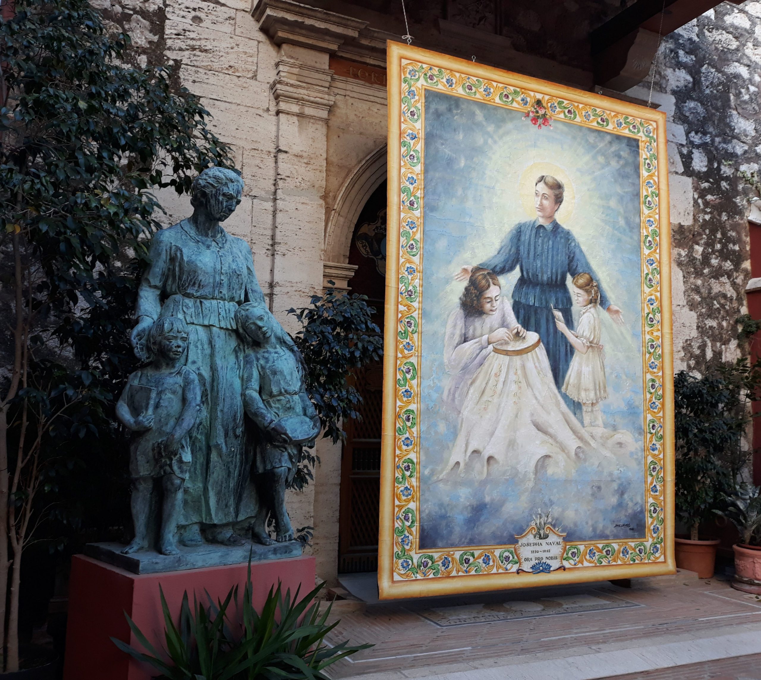 El llenç va ser realitzat per José Manuel Cuevas, artista de la localitat, que en aqueix moment estava treballant en la restauració del retaule major de la basílica. La peça que ha sigut col·locada a l’entrada de la capella de la Mare de Déu de la Salut “romandrà exposada fins a l’11 de desembre del 2021 amb motiu de l’aniversari del naixement de la beata”, ha afegit el rector.