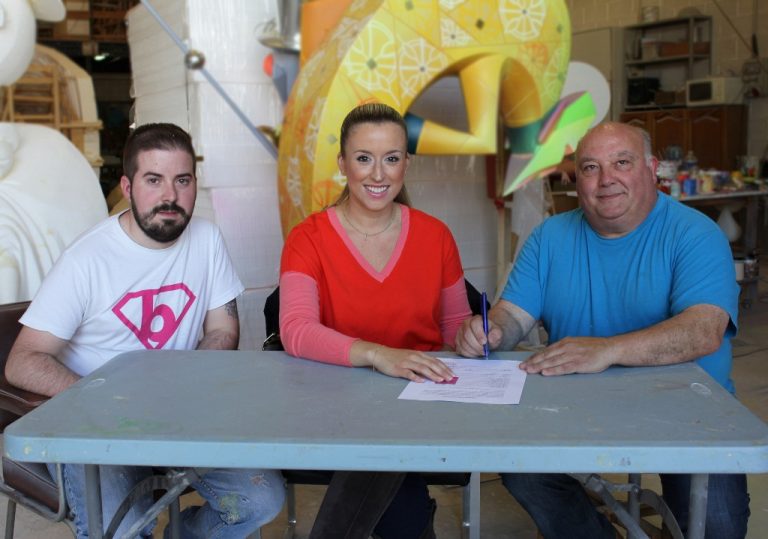 La Falla Blanquerias ha firmat el contracte de les seues falles per al 2018 en els tallers de Manolo Martínez Reig i Cap de Suro Estudi.