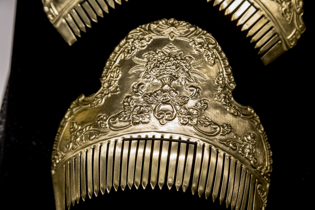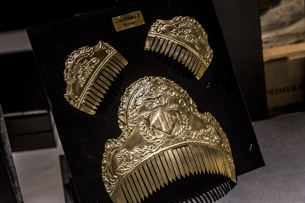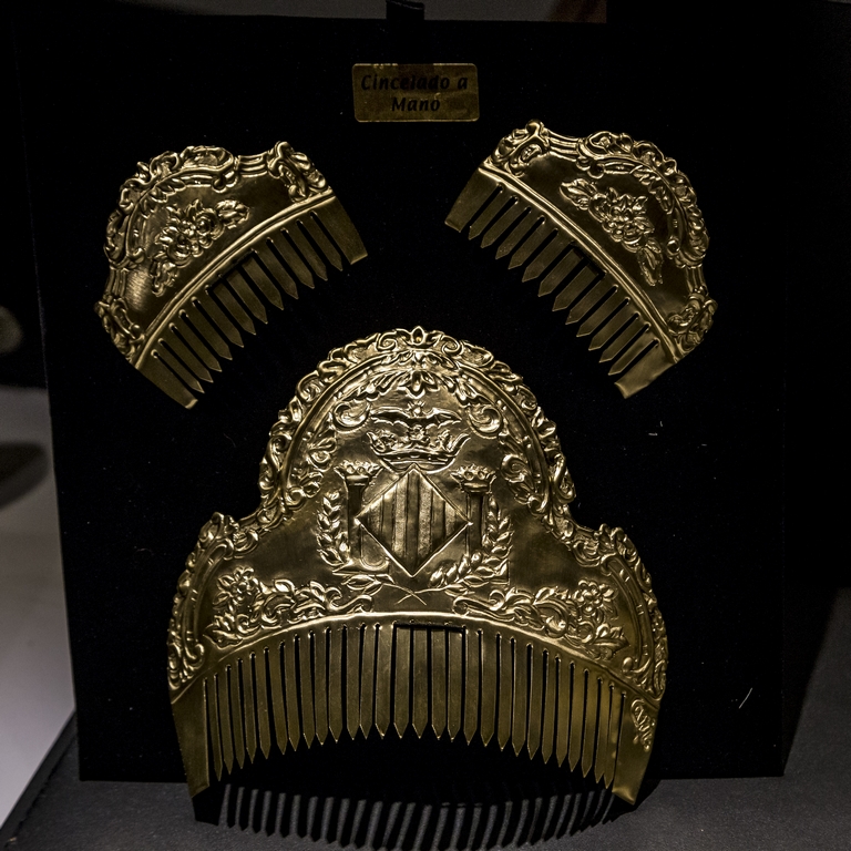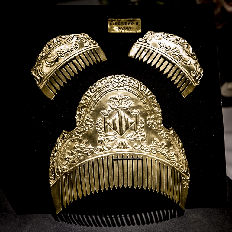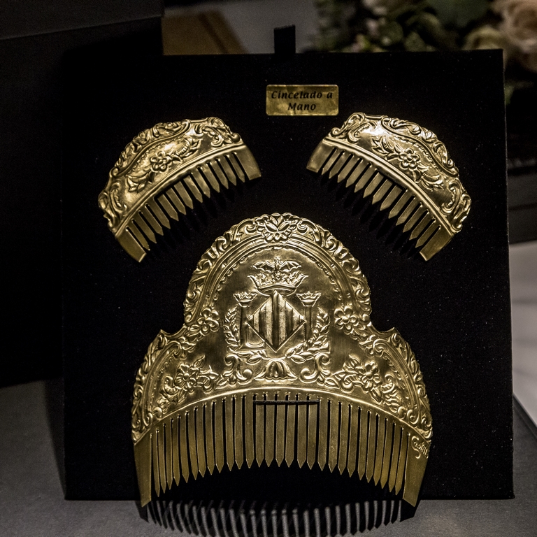El passat mes de desembre Castillo Ciselladors va entregar en l’acte de presentació de la indumentària oficial per a les màximes representants de les Falles 2017, el segon joc de pintes, per als trages inspirats en el Segle XVIII. Una pinta única, cisellada a mà, de disseny de silueta i dibuix central basat en rèpliques antigues, banyada en plata amb l’acabat més coincident al vestit.
