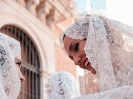 Les Falleres Majors de València llueixen mantillas de Santos Tèxtil