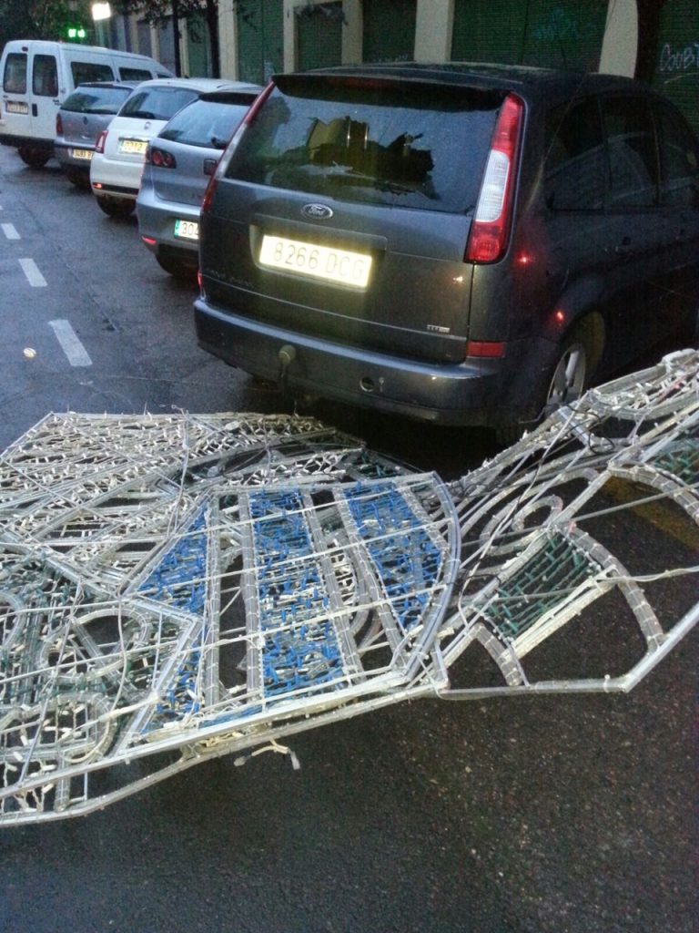 Este matí ha caigut part de l’estructura de la il·luminació en el carrer Sant Maria Micaela segons ha informat la Policia Local de València a través del seu compte de Twitter.