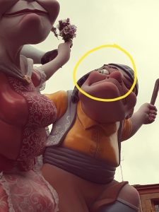La comissió ha comunicat que a causa de causes meteorològiques, la falla s’ha vist afectada, trencant-se les mans del xiquet que figura dalt del remat i per esta ruptura s’ha vist afectada la cara de l’home del remat.