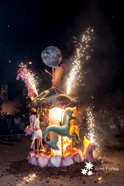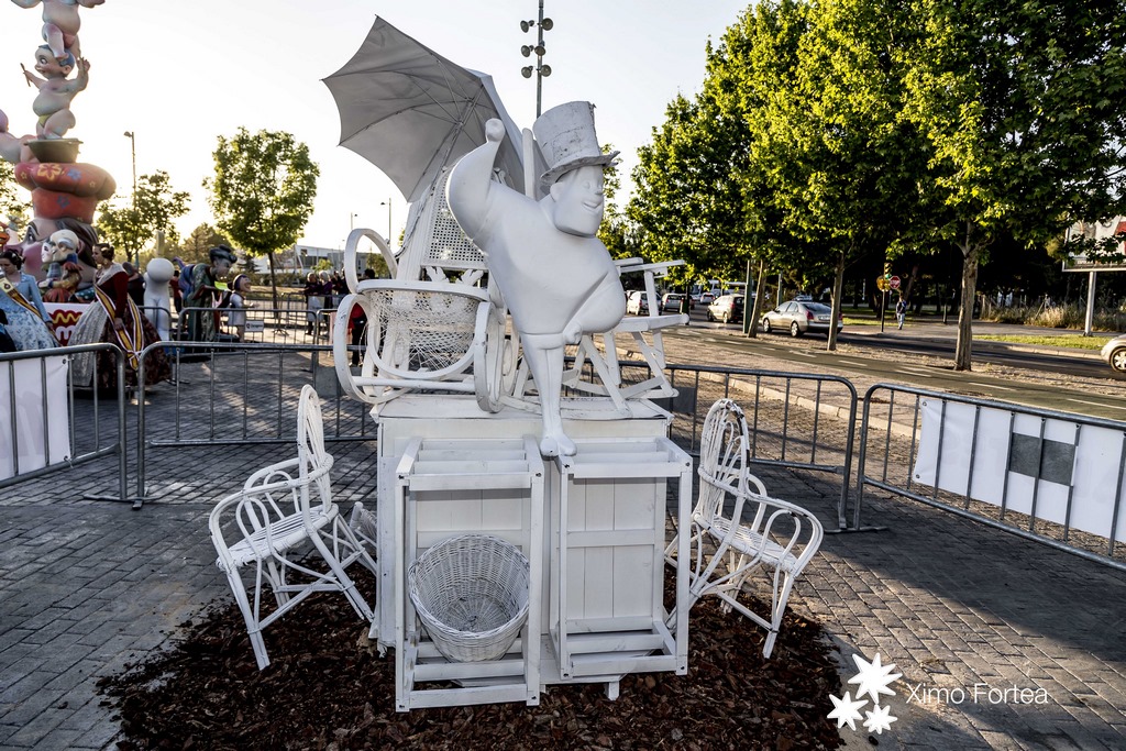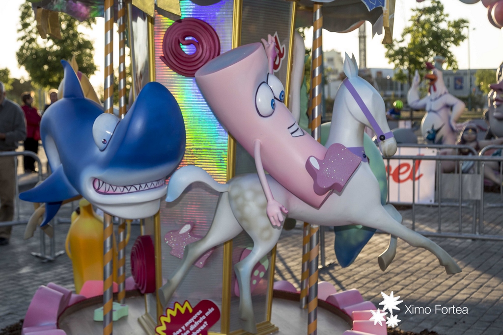 La falla infantil l’ha realitzat l’artista faller Paco Vízcaino de Sueca, el lema del qual és “El Carrusel de les Chuches” en honor a haver sigut regalada a Fallers Pel Món pel Grup Damel.