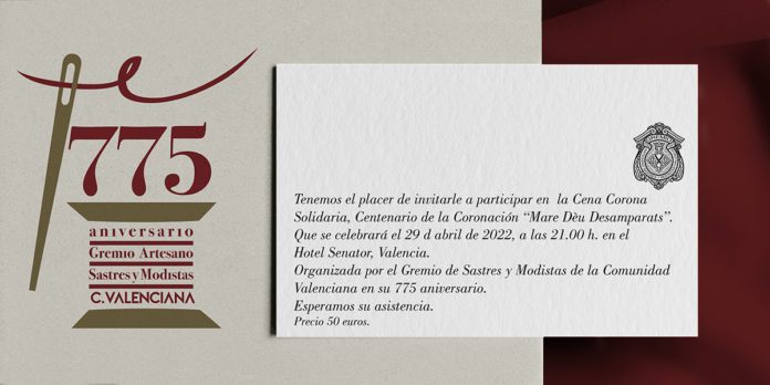 Fran Tochena, Maestro Major del Gremi Artesà de Sastres i Modistes de la CV ha indicat que en el sopar s’entregarà als assistents la insígnia del 775 aniversari i posteriorment es realitzarà una Rifa Solidària a benefici de la Corona de Caridad. Volem continuar incentivant el vessant solidari del nostre Gremi, ajudant a les entitats que més ens necessiten, ha indicat el propi Tochena.
