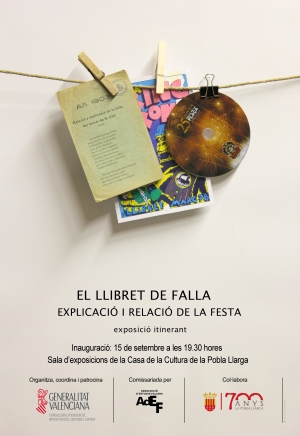 El proper 15 de setembre, s’inaugura l’exposició itinerant “El llibret de Falla: Explicació i Relació de la Festa”, a la Sala d’Exposicions de la Casa de la Cultura de la Pobla Llarga, a les 19:30 hores.