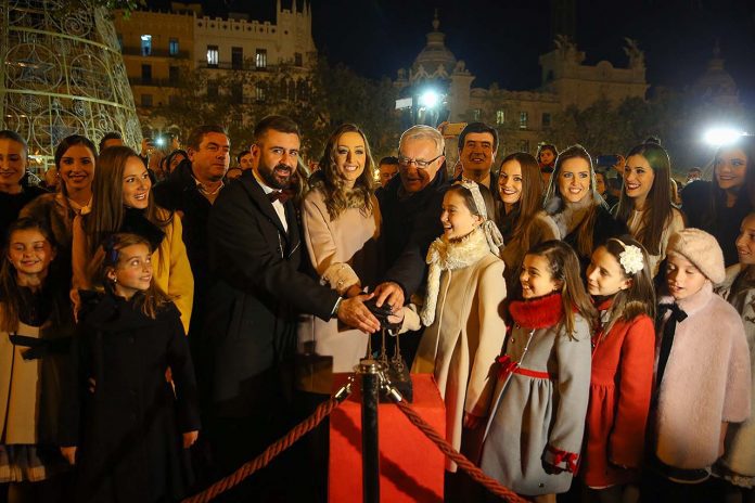La Plaça de l’Ajuntament es prepara per a rebre les festes nadalenques amb la seua decoració habitual. Les Falleres Majors de València, Daniela Gómez de los Àngeles i Rocio Gil Uncio, acompanyades de les seues Corts d’Honor assistien a la inauguració dels motius nadalencs que engalanen la plaça.