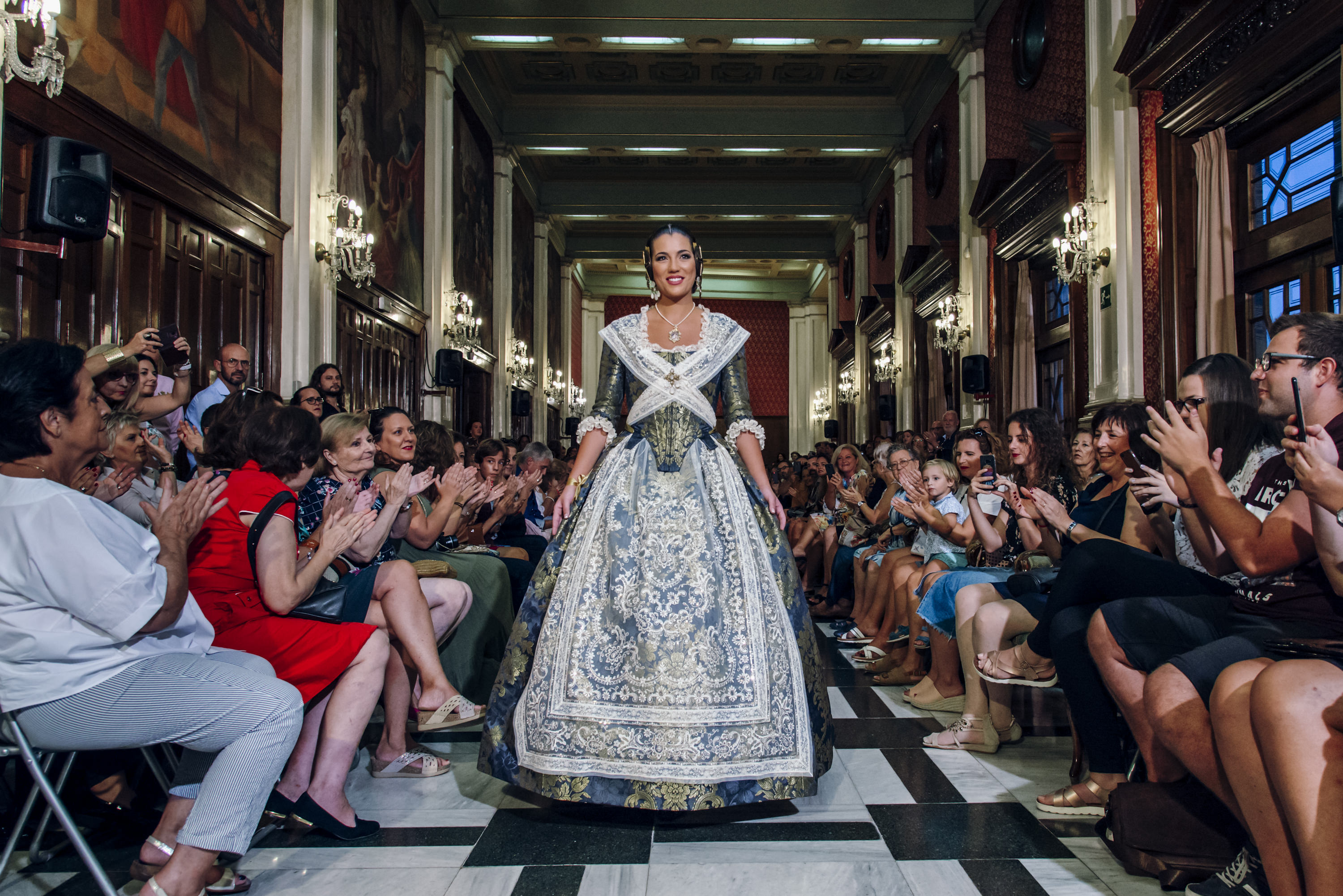 El Saló Stolz de l’Ateneu Mercantil de València servia d’entorn per a la I edició de la Desfilada d’Indumentària Valenciana, organitzat per la Germanor del Ram de l’Agulla amb María Hidalgo i la seua Cort.