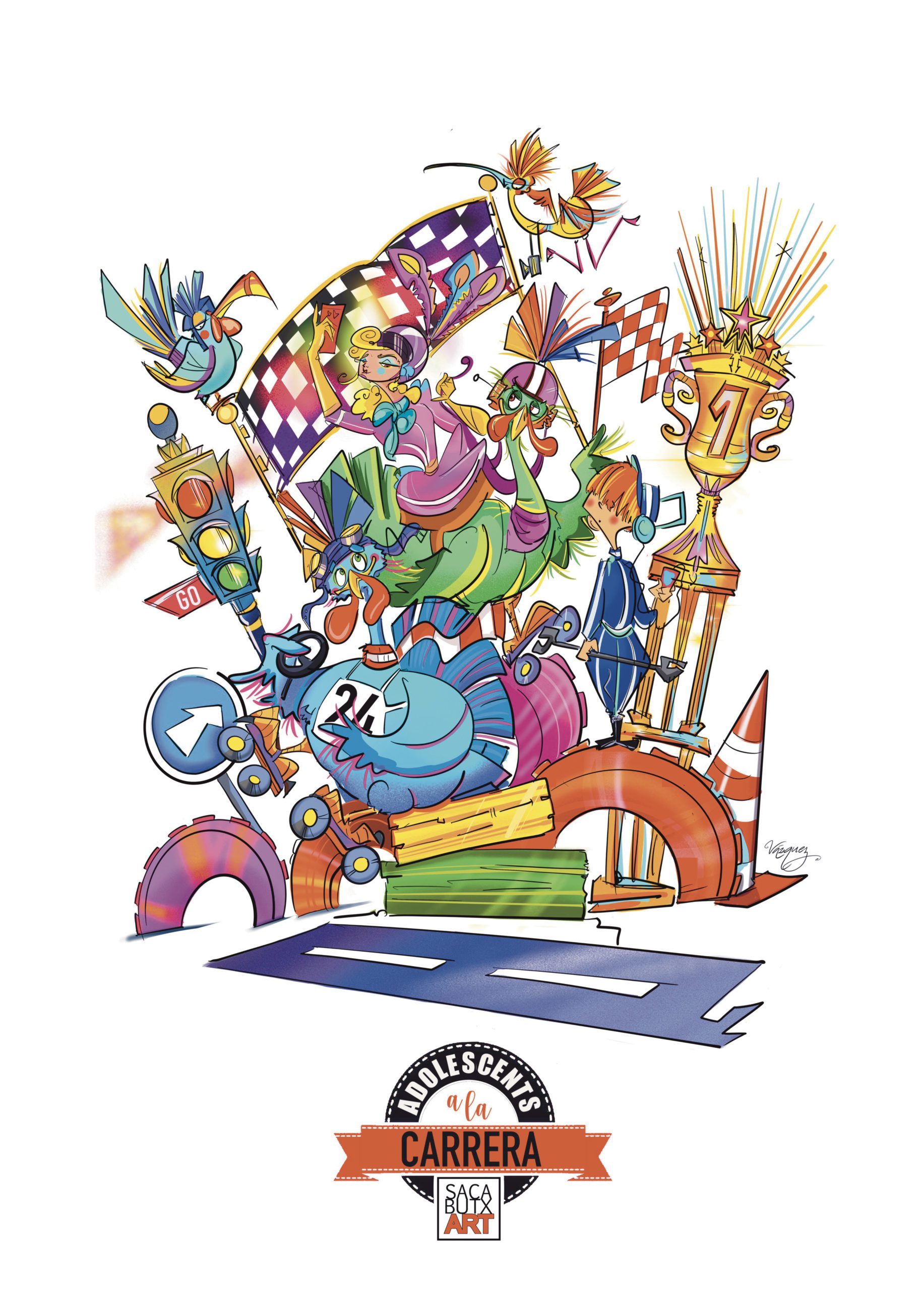 - El lema de la Falla Grande es “Adolescents a la carrera” y está realizada por SacabutxART