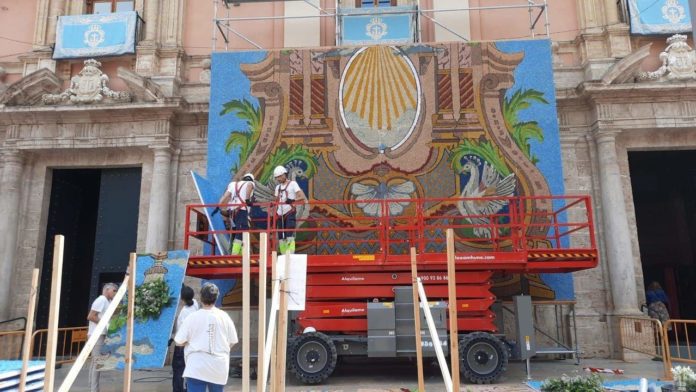 Des d’aquest dijous, 11 de maig, el tapís floral de la Verge presideix la plaça de la Verge de València. Una autèntica obra d’art que, en aquesta ocasió, estarà dedicat al centenari de la seua coronació. Per a això, representarà elements al·lusius i estarà inspirat en el tapís que es va instal·lar, en aquesta mateixa plaça, l’any 1923.