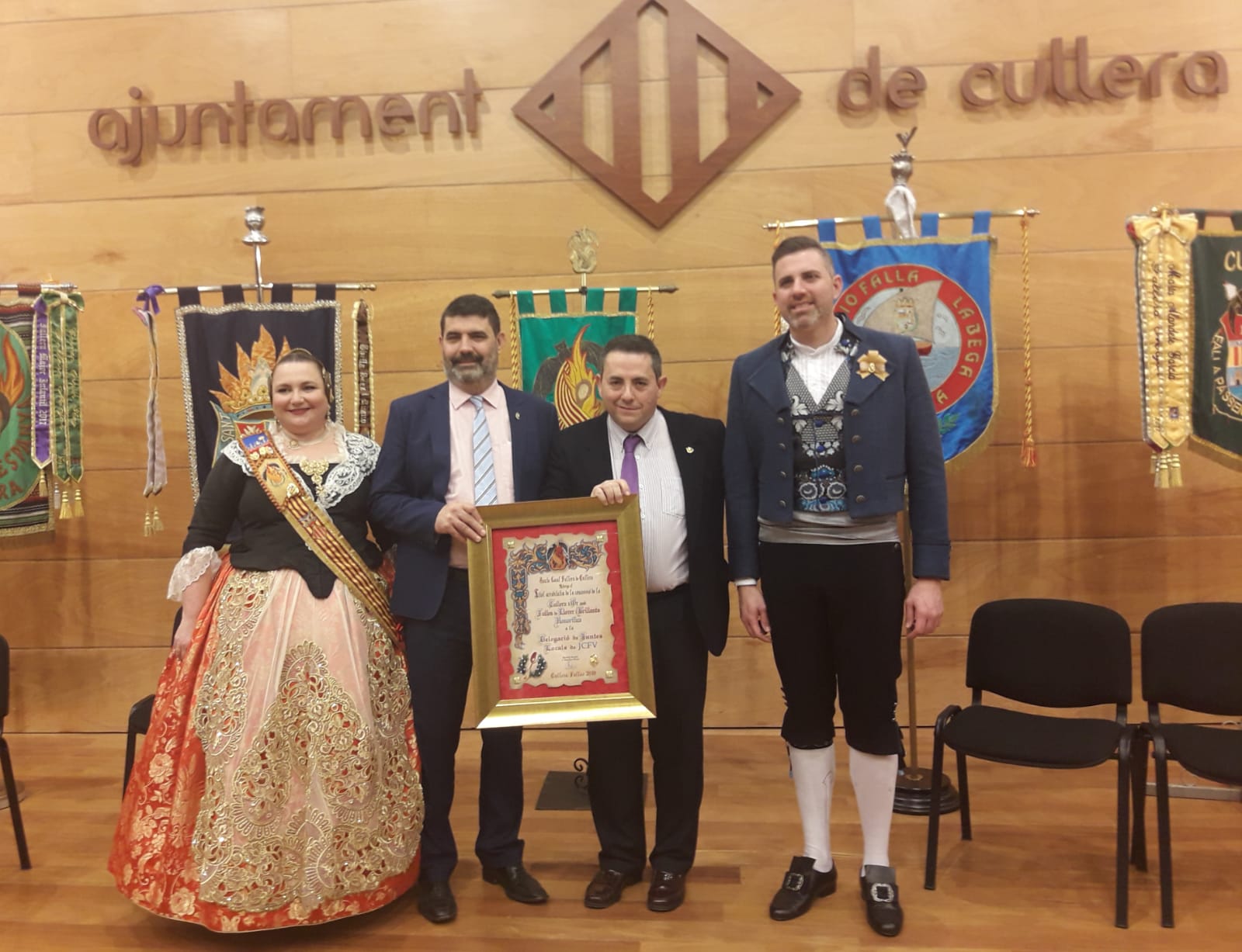 La Junta Local Fallera de Cullera va celebrar el passat dissabte 23 de febrer la seua Gala Fallera de la Ciutat on es van entregar les màximes recompenses al món faller. Dins dels reconeixements destaca el lliurament de la Cullera d’Or amb Fulles de Llorer i Brillants a la delegació de Junts Locals de Junta Central Fallera “per la seua tasca de cohesió, ajuda i promoció de les falles dels nostres pobles”.