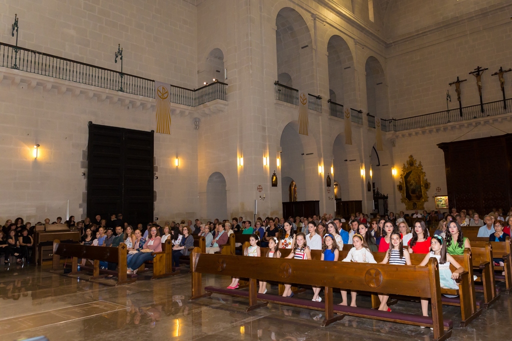 Sofía Escoda i Martina Núñez, Belleses del Foc d’Alacant acompanyades de les seues Dames d’Honor han acudit a la Cocatedral de Sant Nicolau per a assistir a la Benedicció dels adreços oficials que lluiran enguany en els seus trages de nóvia alacantina.