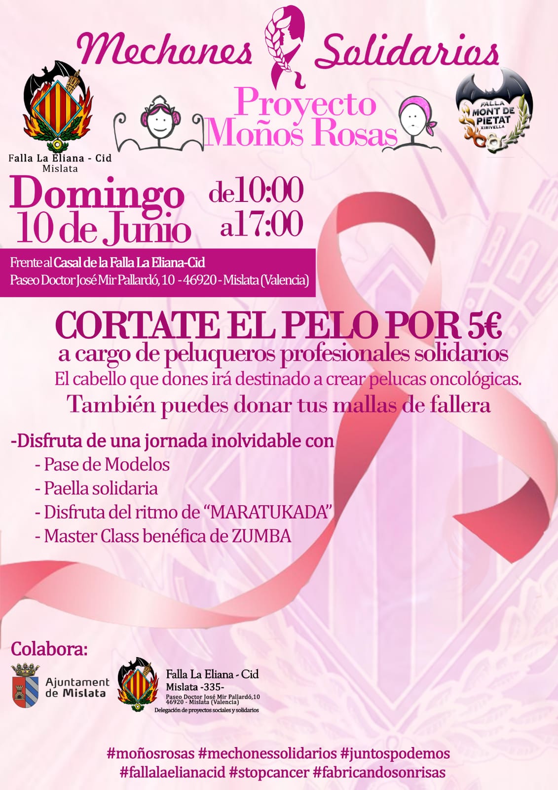 La Falla L’Eliana-Cid de Mislata realitzarà l’acte de recollida de pèl de la campanya de trosses roses, a Falla Mont de Pietat de Xirivella l’acte serà el proximo diumenge 10 de juny de 11h A 17h en el passeig José Mir Pallardo de Mislata.