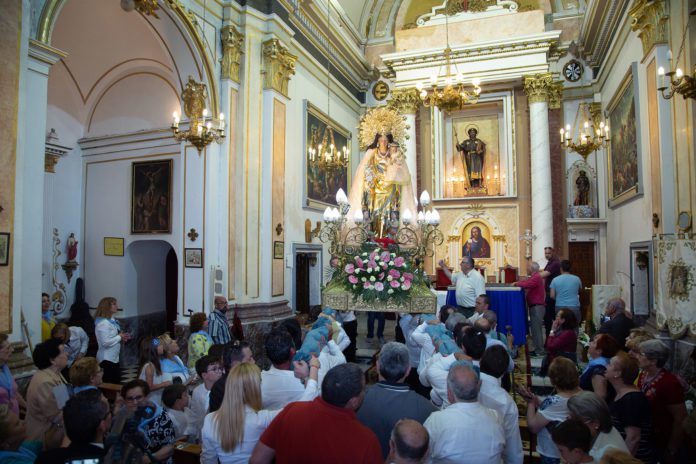 La imatge processional de la Mare de Déu va arribar ahir divendres a les 19 hores a l’entrada d’Alfarp, des d’on va ser traslladada en romiatge a la parròquia Sant Jaume, que va acollir una viglia mariana a les 23 hores, segons fonts parroquials.