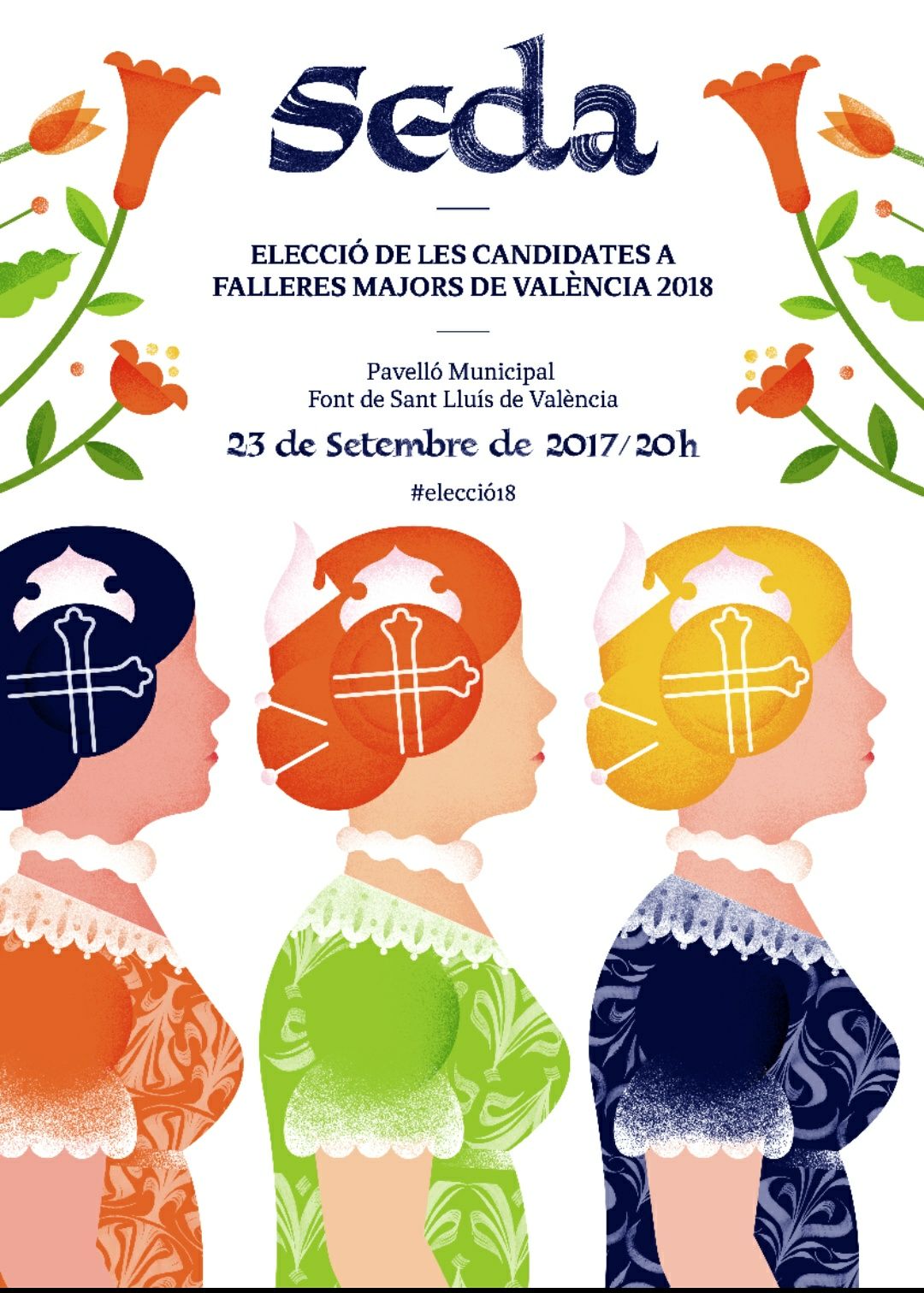 La gala d’elecció de les màximes representants per a les Falles 2018 té el nom de “Seda” i, a través de la mateixa, es vol ressaltar l’enorme importància que a partir del segle XV se li va donar a l’ús d’ella a València, fins al punt que en el 2016 es va celebrar en la ciutat la II Trobada Mundial sota el lema “València, Ciutat de la Seda”.