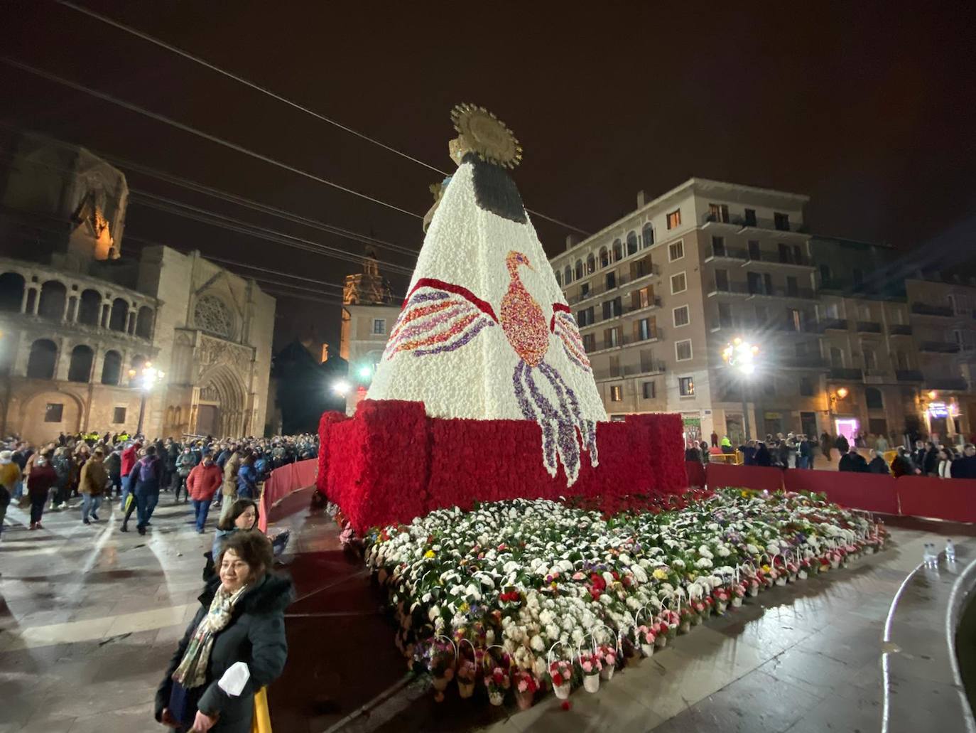 Malgrat la pluja i al fort vent que no han amainat en totes les festes, la devoció ha pogut amb els milers de cors que es reuneixen hui per a admirar una vegada més a la patrona de la comunitat. Després de dos anys d’espera per pandèmia, la plaça de la Verge torna a presentar aqueixa imatge tan comuna de cada 19 de Març. Una vegada més ha començat el dia abarrotada de gent que ha anat a veure com ha quedat el cadafal de la Mare de Deu en finalitzar l’ofrena.