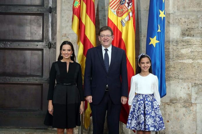 Dins de les primeres visites institucionals de Marina Civera i Sara Larrazàbal com a Falleres Majors de València ha estat la recepció al Palau de la Generalitat Valenciana per part del president Ximo Puig. Les escales i el pati gòtic van ser el primer escenari d’aquesta visita on els protagonistes es van fer les fotografies oficials.