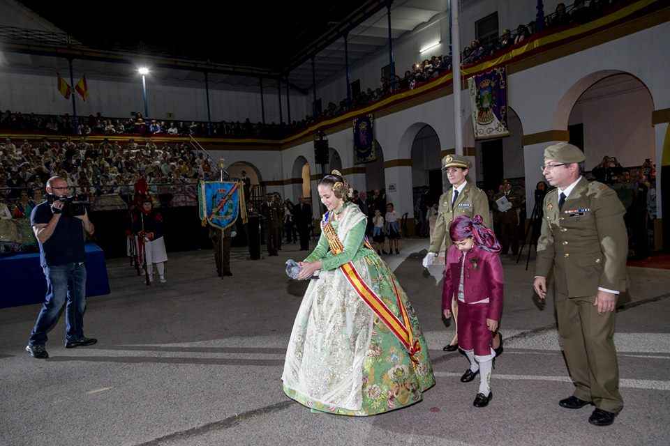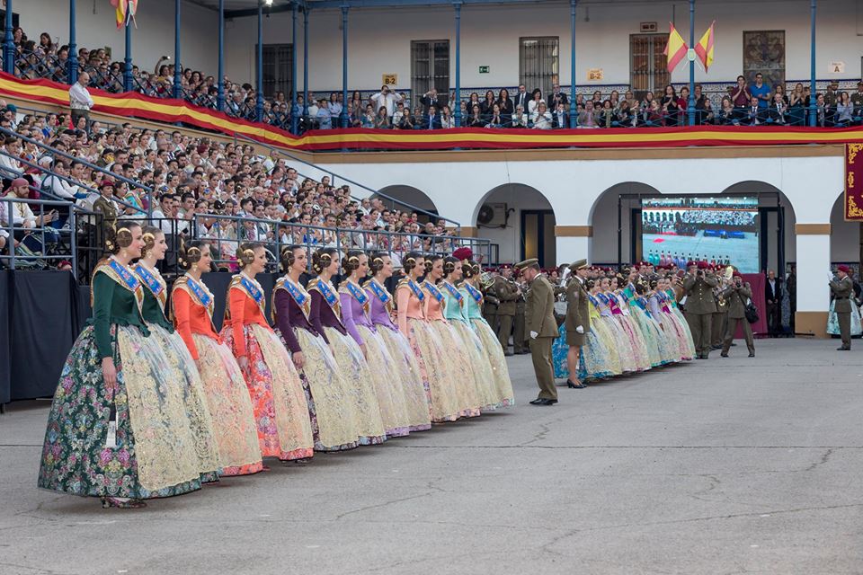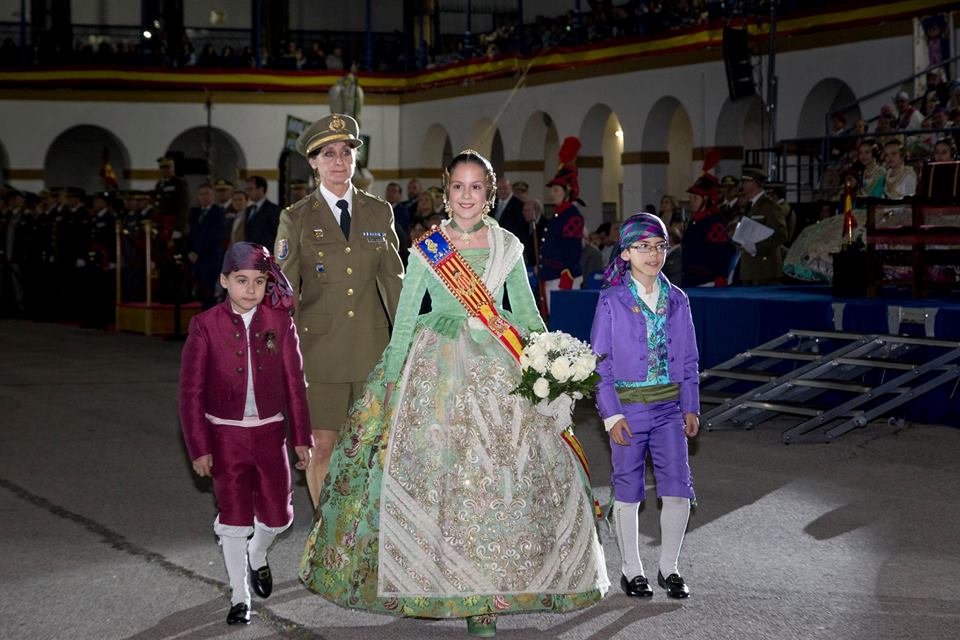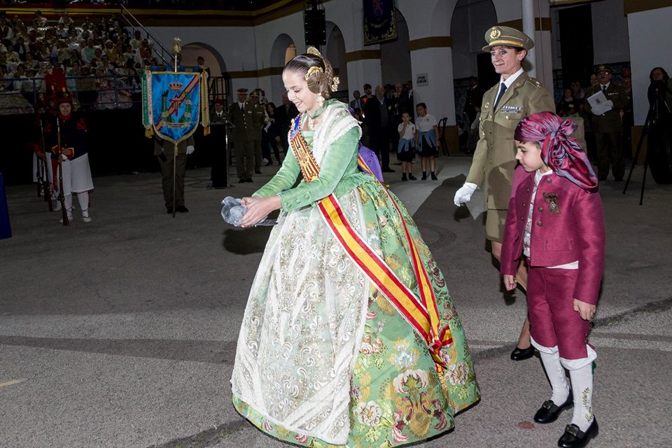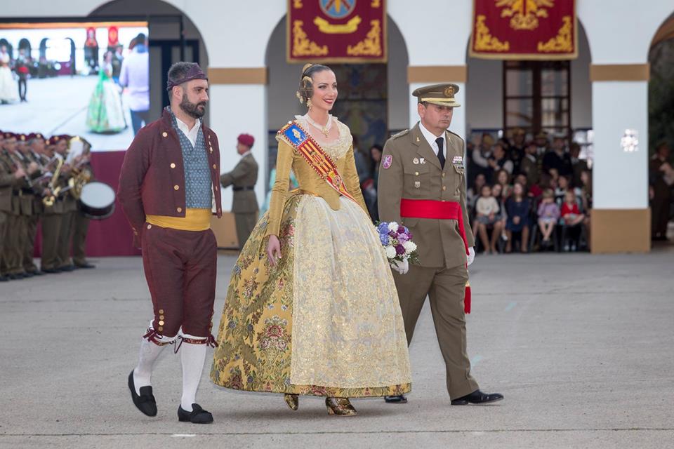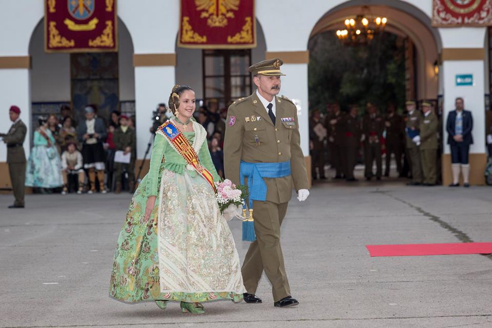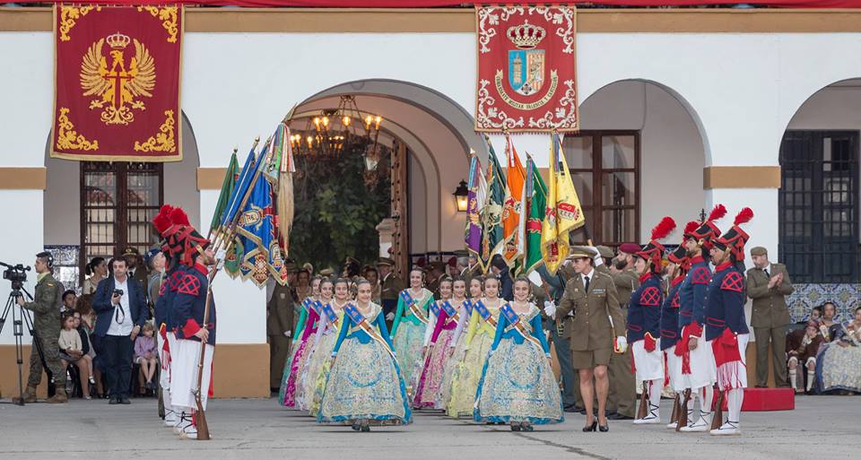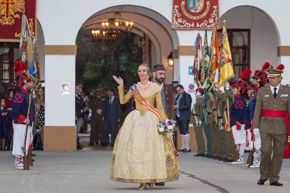 Les Falleres Majors de València i les seues Corts d’Honor van entrar a peu, i no en les acostumades calesses, baixos els guions i banderins de la guarnició present en l’aquarterament, donant començament al protocol·lari acte.