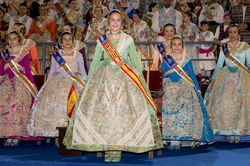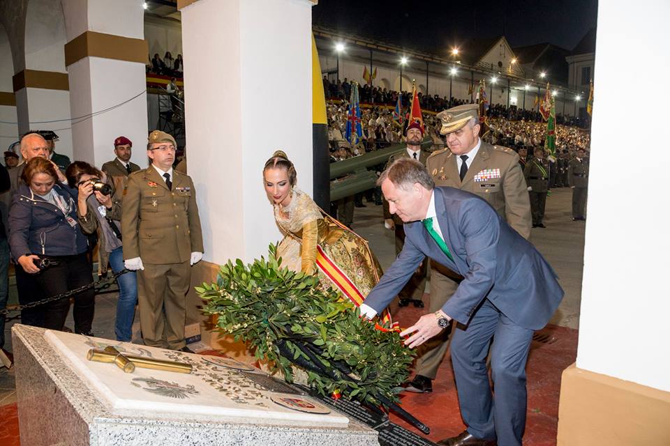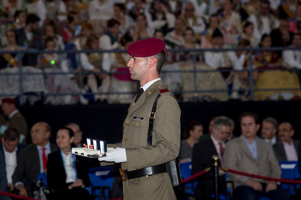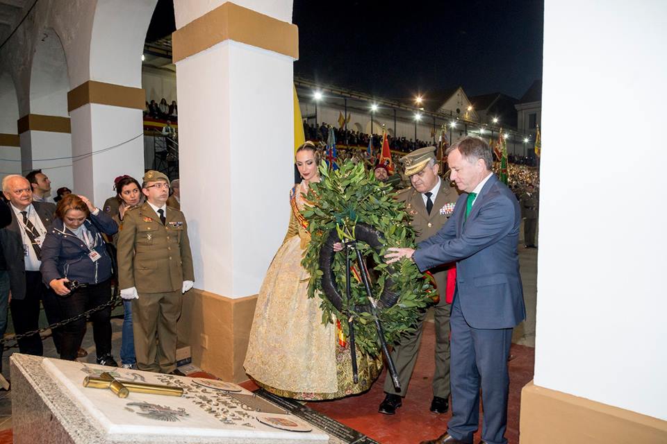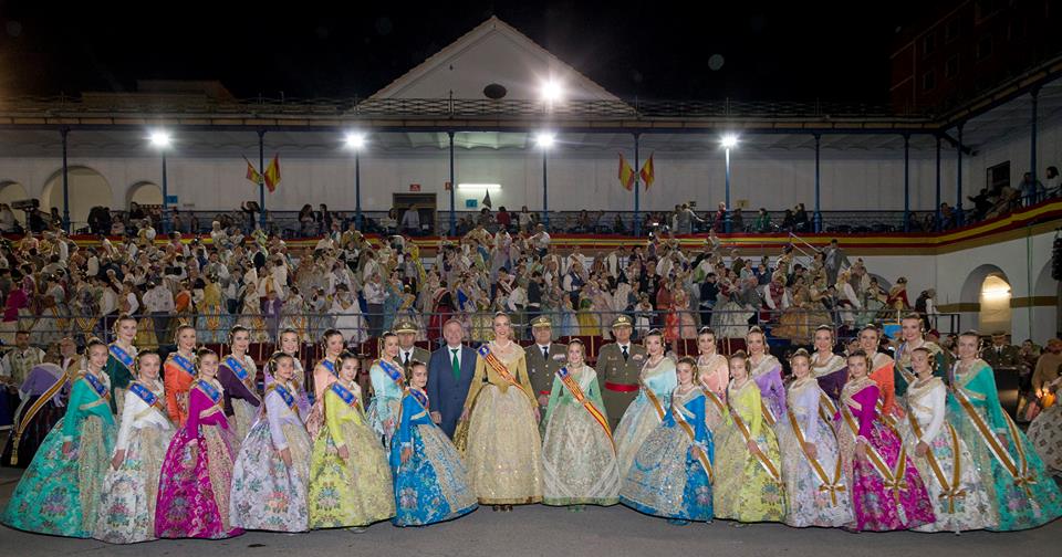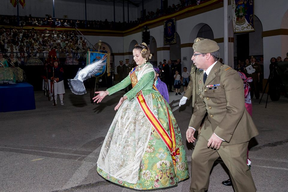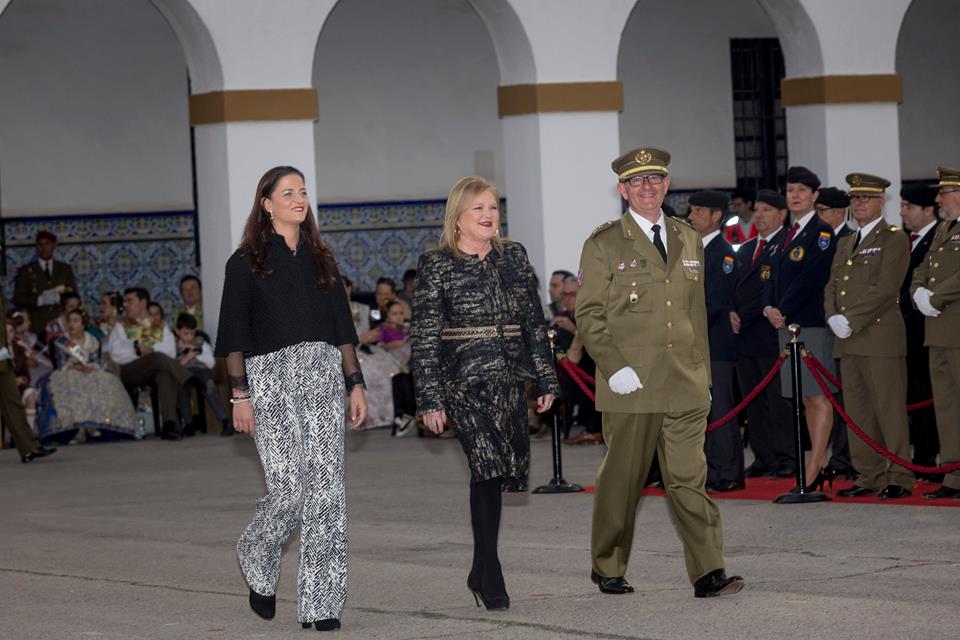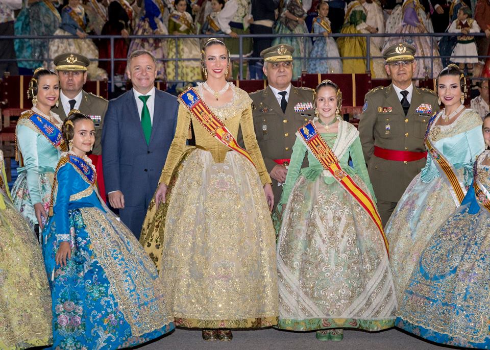 Les Falleres Majors de València i les seues Corts d’Honor van entrar a peu, i no en les acostumades calesses, baixos els guions i banderins de la guarnició present en l’aquarterament, donant començament al protocol·lari acte.