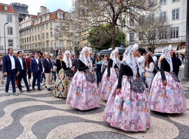 El grup, abillat amb el vestit típic, ha partit de la Praça do Comércio i ha recorregut els principals carrers de la ciutat fins a arribar a la cèntrica Praça Dom Pedro IV, més coneguda com Praça Rossio, on dijous passat es va plantar una foguera de vuit metres d’altura elaborada per l’artista Federico Molinero. A més, en aquest punt el Patronat Costa Blanca ha instal·lat una Oficina Temporal de Turisme per a informar als transeünts sobre aquesta i altres festes populars de la província d’Alacant.