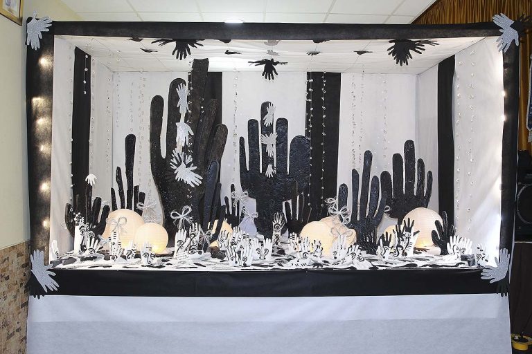 Són mans, juguen amb els blancs i els negres, com a llums i ombres. Volien representar a totes les ètnies, sense diferències socials, englobant a tota la humanitat. Se cerca el simbolisme de les mans, els arbres són les mans més fosques, els ulls són la visió de la història particular de cadascun. Belén format per més de 40 mans.