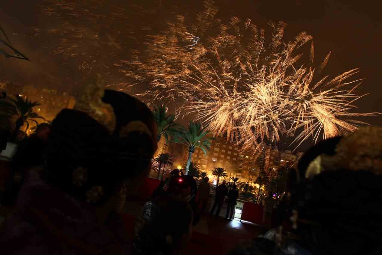 La pirotècnia “Vulcano” ha sigut l’encarregada de posar el punt final a l’acte d’Exaltació de Raquel Alario i la seua Cort d’Honor. Com mana la tradició, i sempre que les condicions meteorològiques així ho han permés, després de finalitzar l’acte d’Exaltació, els focs artificials han inundat de llum i color els jardins del Palau de la Música.