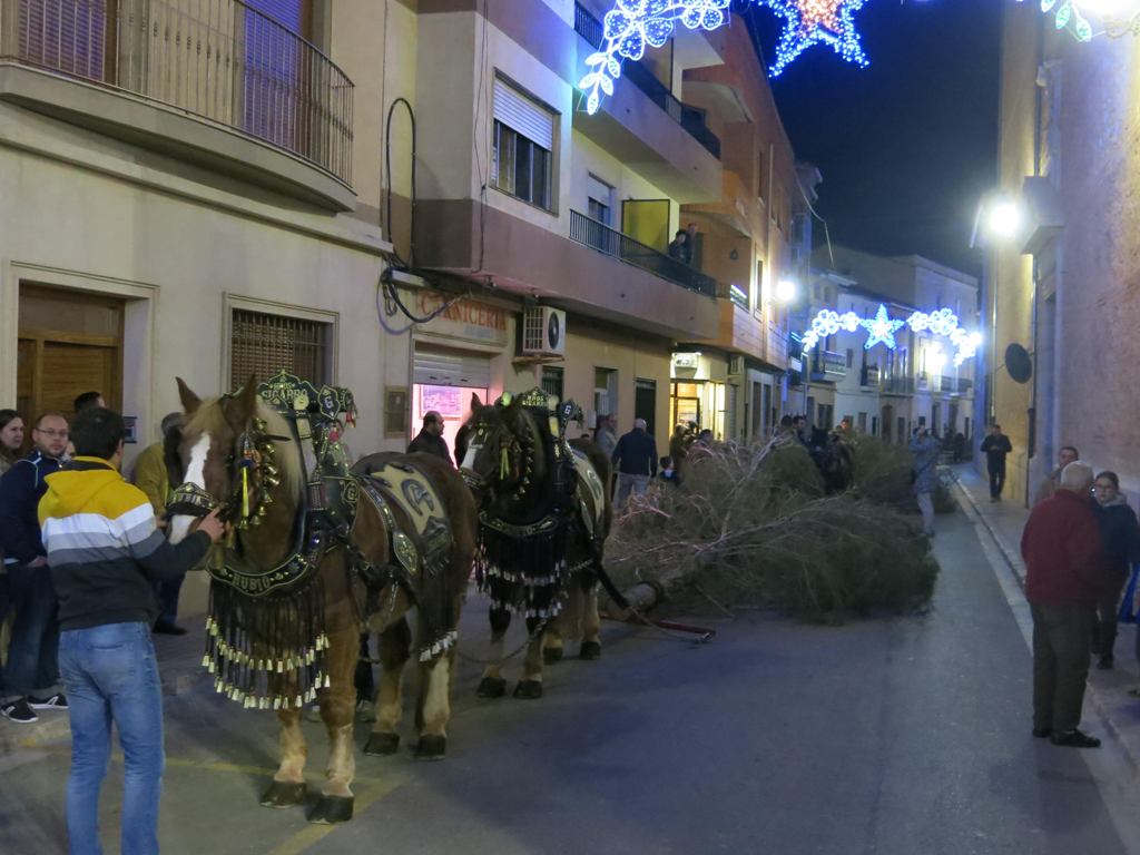 Així, ja el divendres a la vesprada la imatge del sant va ser conduïda al dosel preparat per Vicenta Soler en la seua casa. Tot seguit va tenir lloc l’entrada de pins per tot el centre del poble fins a la Plaça de la Constitució on immediatament començava la construcció de la tradicional foguera per part de la brigada municipal davant l’expectant mirada dels veïns.