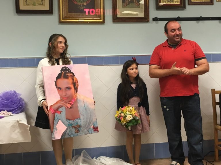 Maria Barberá Luján i Pilar Luján López representaran a la comissió enguany faller. María va ser proclamada el 22 d’Octubre acompanyada dels fallerets de la comissió infantil en un berenar especial. El casal, guarnit per a l’ocasió, va ser el marc on va tindre lloc l’acte. En primer lloc es despedió a la fins llavors Fallera Major Infantil, Nerea Díaz Ruíz, que va dedicar unes paraules d’afecte i agraïment a la seua comissió i a la seua família. Emocionada, Nerea va posar fi al seu regnat amb els aplaudiments dels seus fallers que se senten orgullosos d’haver-la tingut com a representant, tan xicoteta i havent demostrat que és molt gran.