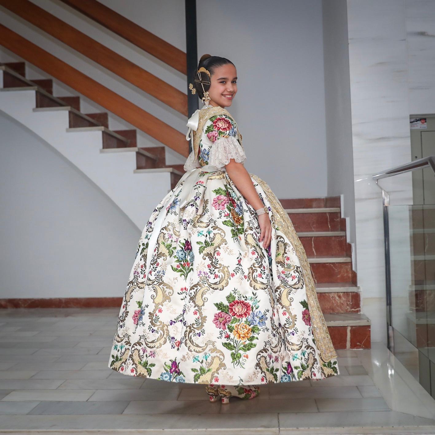 Abillada amb el seu vestit de valenciana, la xiqueta s’ha dirigit a l’Ajuntament de València, després de rebre una forta ovació dels allà presents. Als peus de l’Ajuntament s’ha reunit amb Pere Fuset, President de Junta Central Fallera, i amb el seu mantenedor, Javier Vilalta, i els tres han pujat al Rolls Royce Phantom III que els conduiria al Palau de la Música.