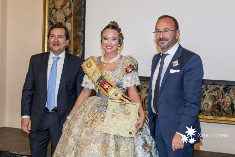 - Ana Belén Castelló Ríos (Bellessa del Foc d’Alacant 2016), espolí Fogueres de Sant Joan en color Ivoire