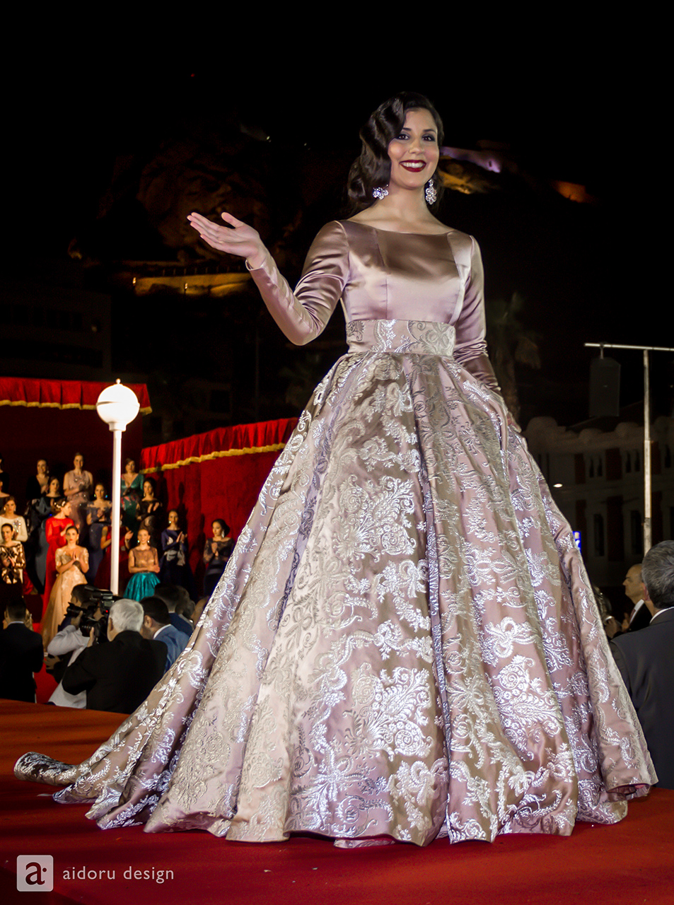 La Bellesa del Foc d’Alacant 2016 i les seues Dames es despedixen lluint teles de Vives i Marí en els seus vestits de gala.